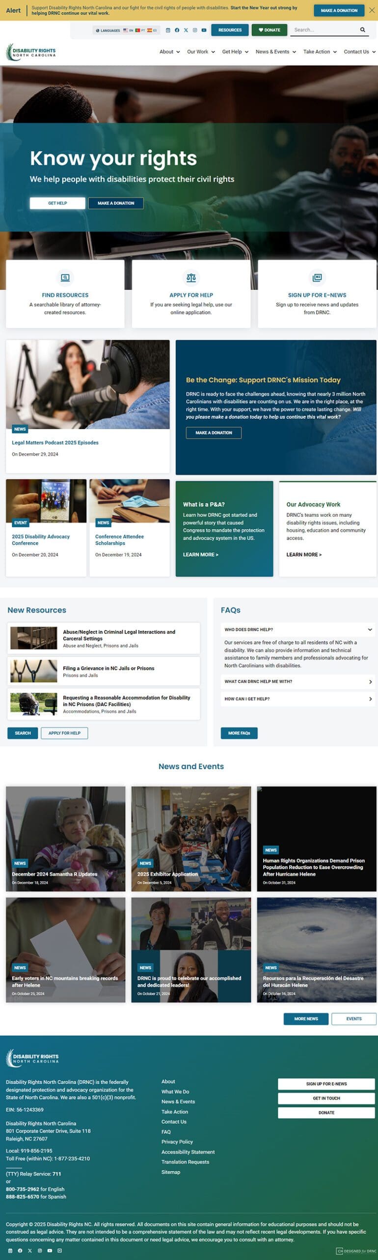 Disability Rights North Carolina (DRNC) is a nonprofit organization dedicated to advocating for the rights and inclusion of people with disabilities. DRNC needed a modern, accessible, and user-friendly website that aligned with WCAG and Section 508 compliance standards. Our team worked on a complete website overhaul, improving navigation, implementing an intuitive content management system, and ensuring accessibility across all digital content. The result was a streamlined, fully accessible website that allowed DRNC to better serve its community and provide crucial legal resources more effectively.